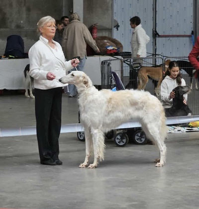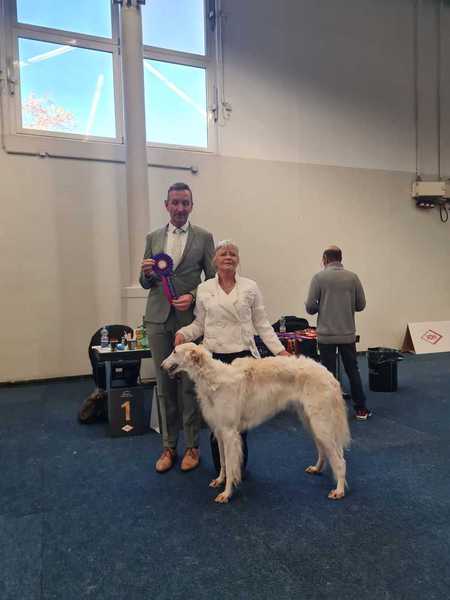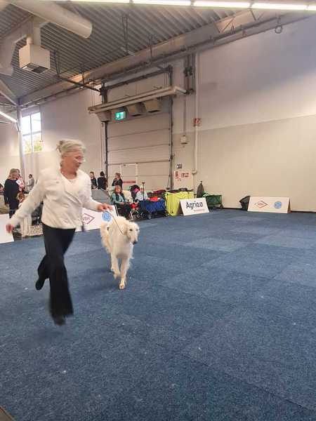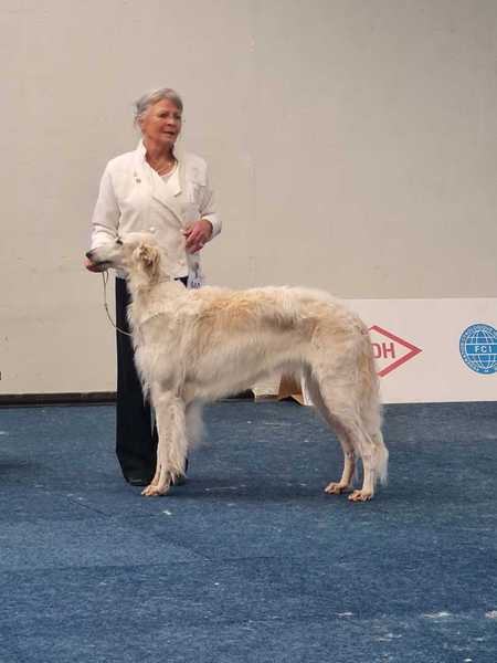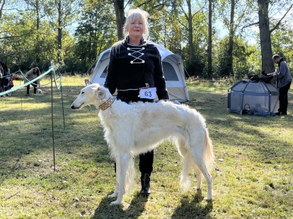 Chesana Beljajew bekam ein V2 und das FCI-Res.CACIB. Diese V-Bewertung hat sie noch benötigt für Coursings in den Niederlanden.
