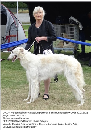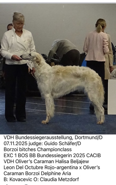 Oliver`s Caraman Halisa Beljajew (Zwischenklasse): V1(4),VDH, CAC, beste Hündin und BOS.